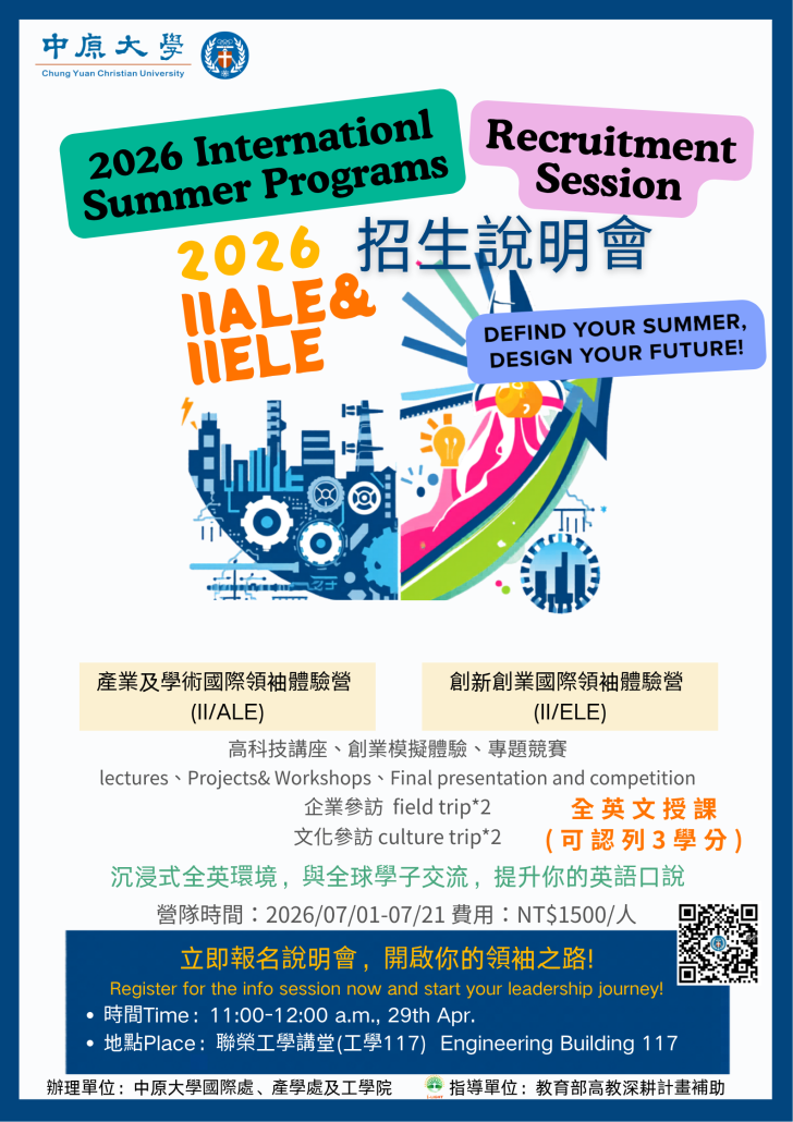 【暑假營隊】2026IIALE &IIELE 產創營招生說明會於4/29辦理!歡迎報名!