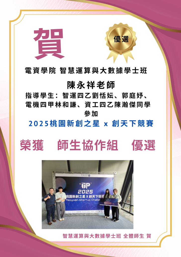 718642025-09-25 11:30:352025-12-15 14:47:45【賀】陳永祥老師指導學生參加「2025桃園創新之星x創天下競賽」榮獲優選